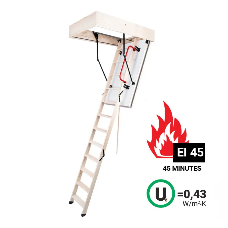 Чердачные лестницы EI45 POLAR имеют класс огнестойкости - EI45 (соответствует огнезащите в течении 45 минут), они деально подходят для установки в помещениях подверженных возгоранию, их противопожарные свойства позволят эффективно изолировать помещение, в котором возник пожар, от чердака, тем самым предотвращая дальнейшее распространение огня.