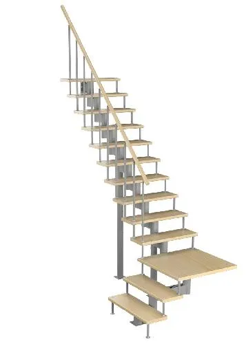 Легкая для монтажа и доработок по высоте: можно добавить подиум или легко обрезать по высоте. Практичная и компактная – удобно наступать так, как все ступени открыты. Угол подъема составляет 34 градуса. Монтаж осуществляется силами двух человек на объекте по указаниям, приведенным в паспорте на лестницу.