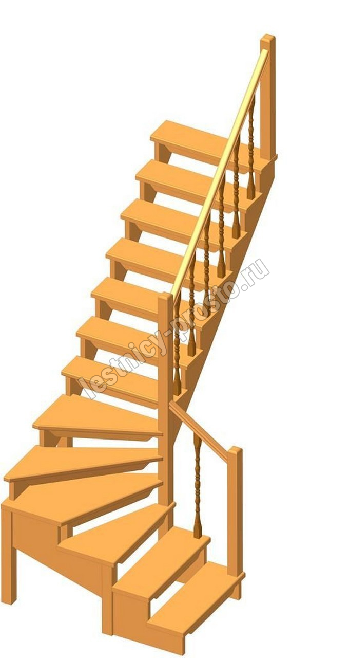 Удобная лестница на косоурах с поворотом на 90 градусов. Открытые ступени визуально облегчают конструкцию. Ограждения по всему маршу обеспечивают дополнительную безопасность и возможность декорирования. Монтаж осуществляется силами двух человек на объекте по указаниям, приведенным в паспорте на лестницу.
