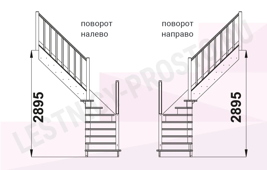 Схема лестницы ЛС-225М с поворотом налево