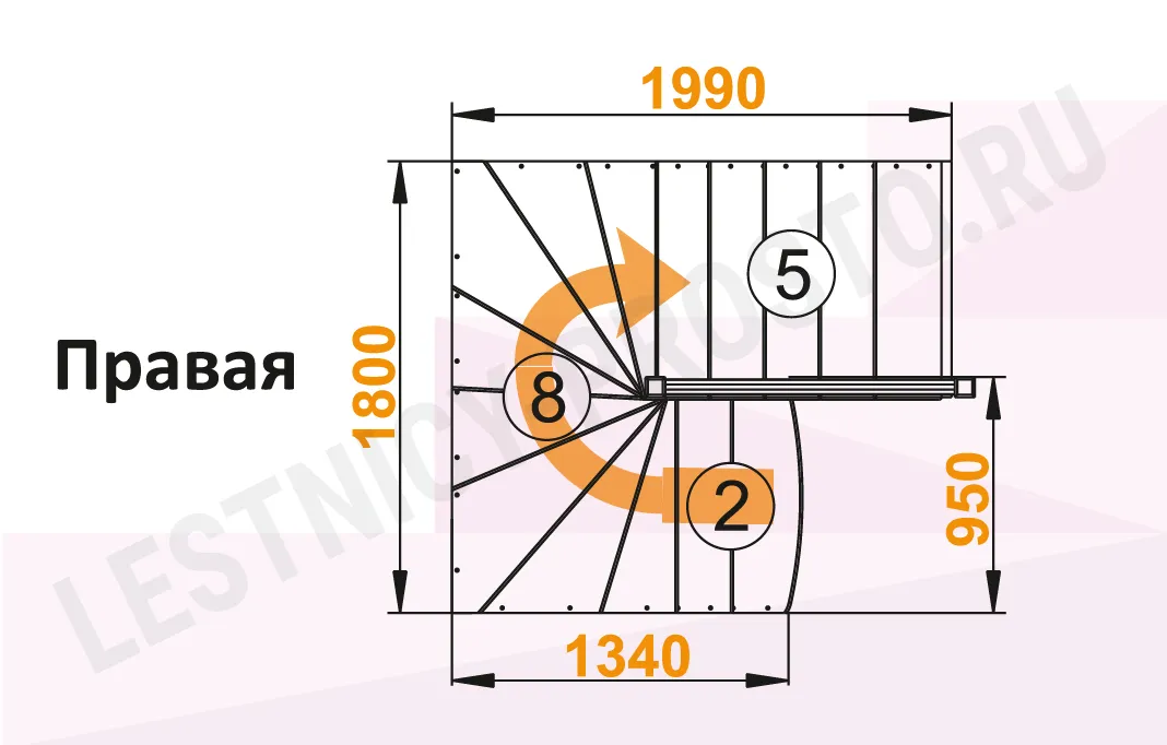 Лестница К-003М/4 с поворотом налево