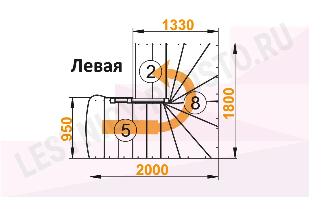 Ступени и поручень изготовлены из дуба, остальные элементы лестницы из сосны.