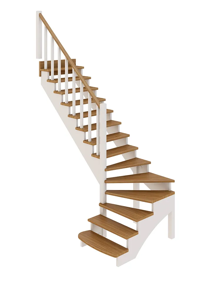 Базовый комплект включает в себя деревянные элементы лестницы с подступёнками и ограждения без какого-либо покрытия.