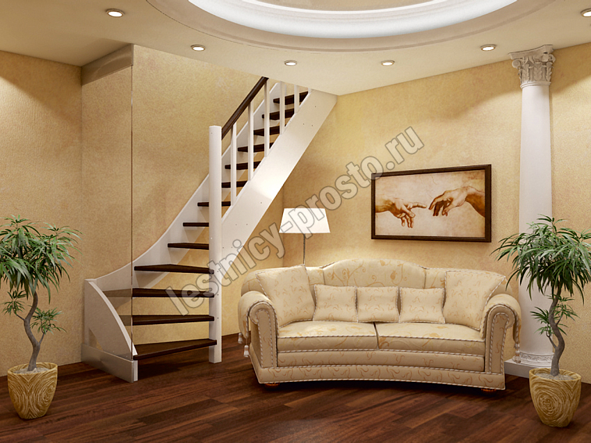 Базовый комплект включает в себя деревянные элементы лестницы с подступёнками и ограждения без какого-либо покрытия.