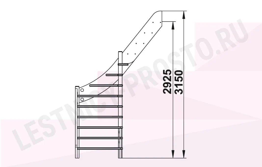 Базовый комплект включает в себя деревянные элементы лестницы без какого-либо покрытия.