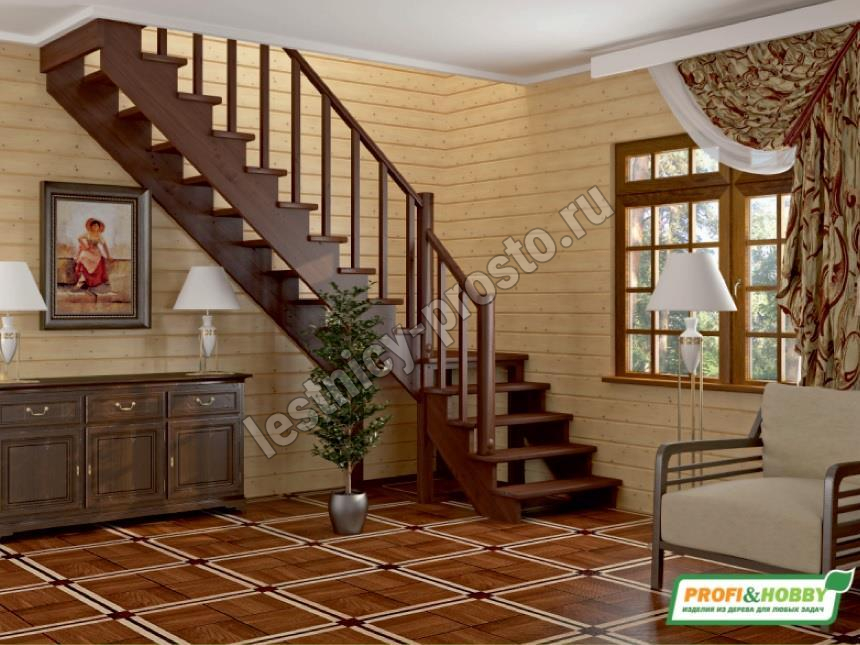 Лестница дополнительно может быть укомплектована подступенками из сосны или ясеня (покупаются отдельно) Базовый комплект включает в себя деревянные элементы лестницы и ограждения без какого-либо покрытия.