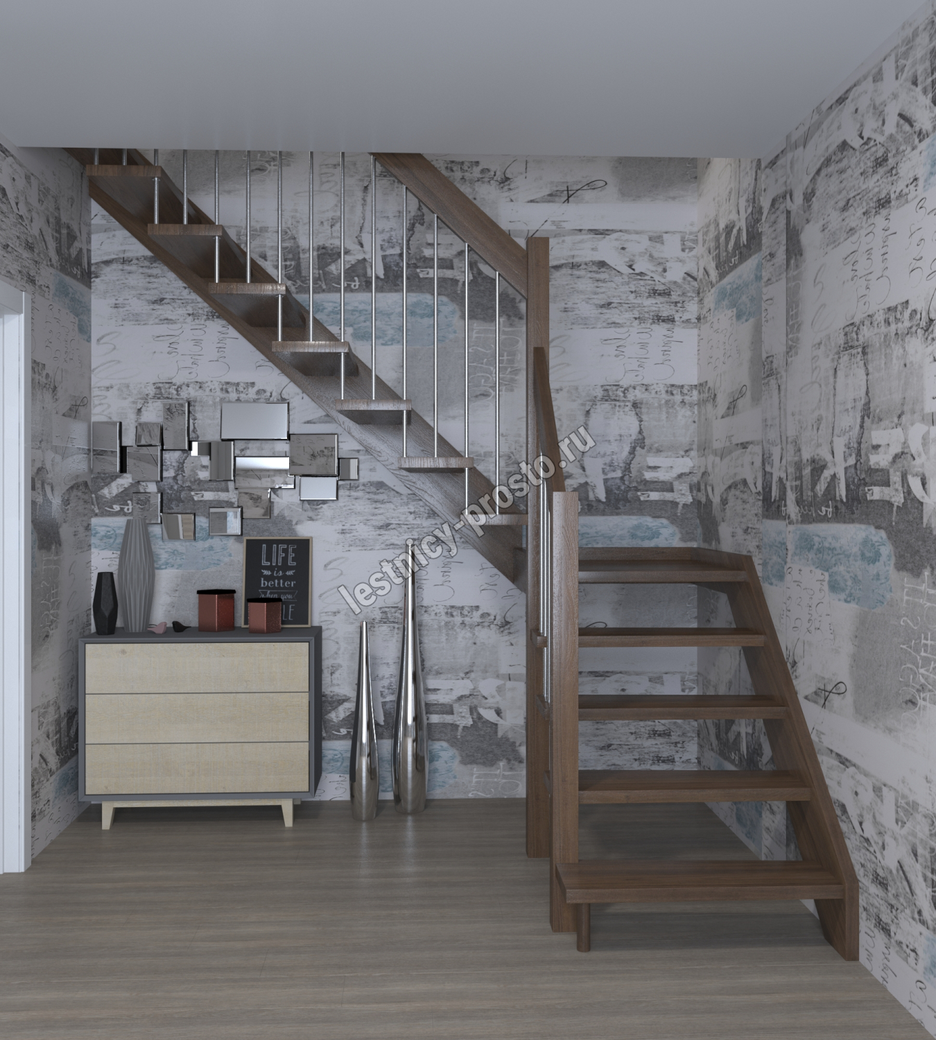 Лестница Prosto Console г-образная забежная дуб, h320 см
