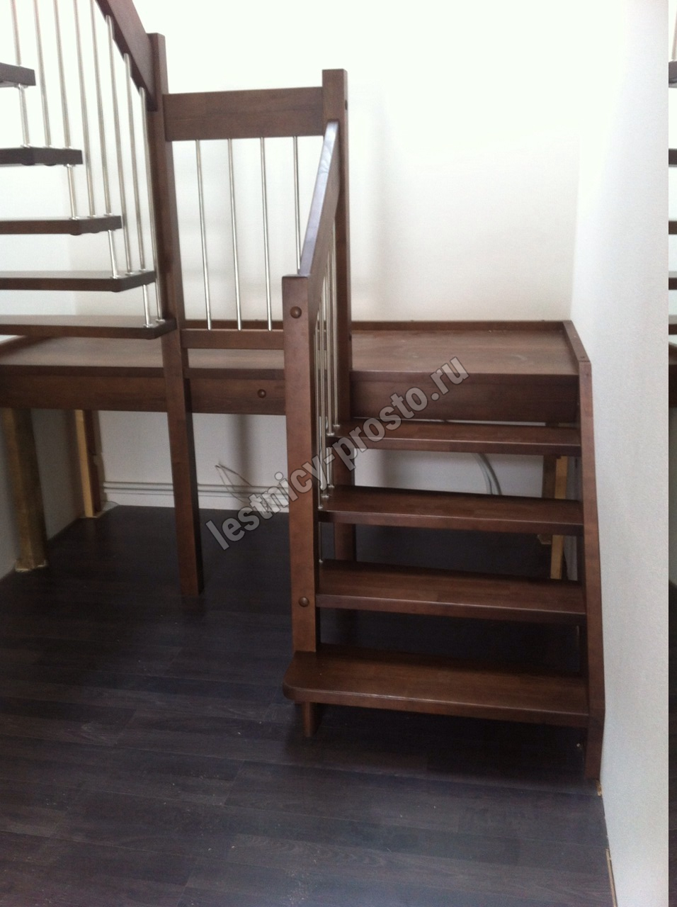 Надёжная современная лестница выполнена по немецкой технологии. Стоимость указана для лестницы с ограждением (с одной стороны); Поставляется в разобранном виде, в комплекте необходимый крепёж; Лестницу можно собрать самостоятельно; Так же, вы можете заказать услугу монтажа нашими специалистами; 4 вида породы дерева для изготовления лестницы: сосна, бук, ясень, дуб; возможна комбинированная лестница: из сосны (ступени бук, ясень, дуб); Деревянные элементы без какого-либо покрытия, отшлифованы, готовы к покраске. За дополнительную плату, вы можете изменить любые параметры, а именно: увеличить глубину ступени; увеличить ширину марша до 900 мм. и выше; заказать подступенки к лестнице; заказать отделку перекрытия (между 1-м и 2-м этажами); изготовить дополнительный промежуточный марш; заказать ограждение 2-го этажа; покраска в любой цвет или несколько цветов или покрытие защитными средствами; дополнение балясины из нержавеющей стали деревянными элементами; покраска балясин из нержавеющей стали порошковой краской в цвет RAL.