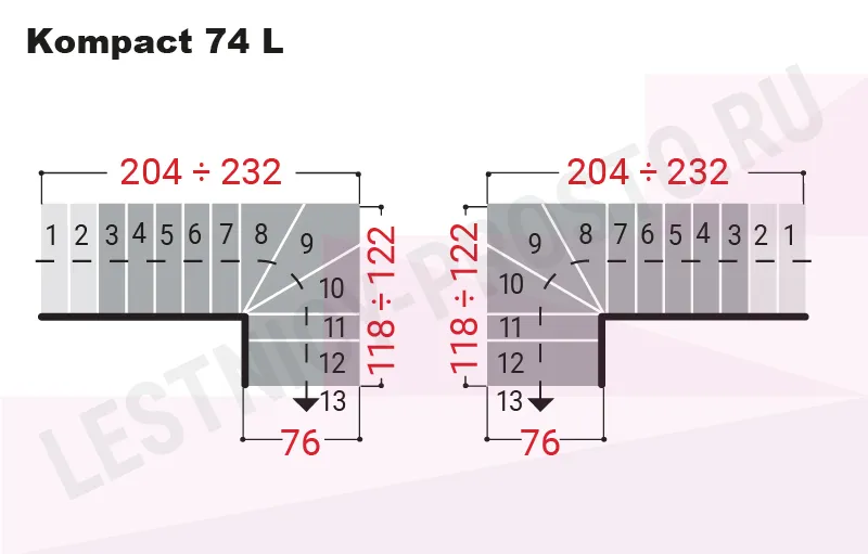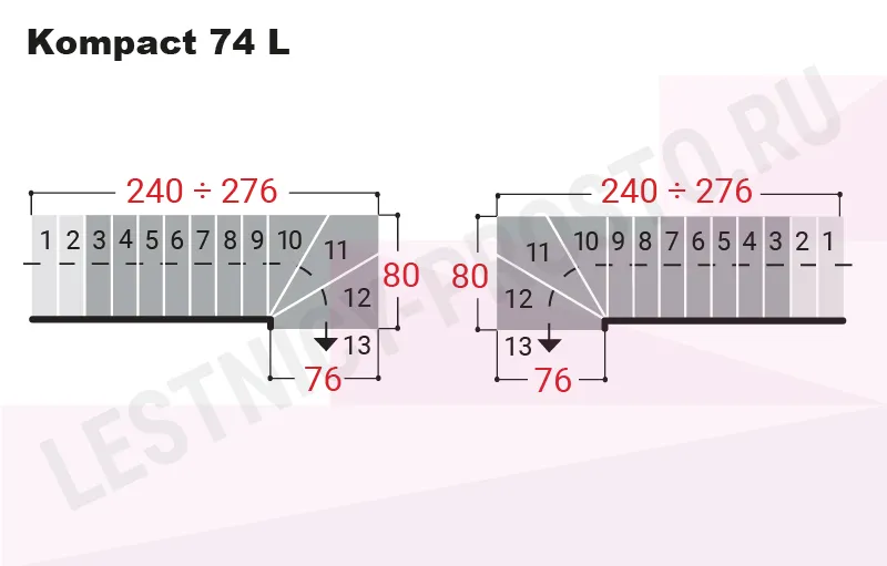 Красивая комфортная лестница с уникальной модульной конструкцией, которая позволяет собрать большое число модификаций, подходящих под ваш проём и другие условия помещения. Возможные варианты сборки лестницы смотрите в блоке "чертежи и схемы". При монтаже модульной лестницы KOMPACT, вы можете варьировать высоту шага и проступь, получив точную необходимую высоту и габариты. Лестница KOMPACT возможна в двух вариантах: с шириной марша 740 мм и 890 мм. Ступени выполнены из массива бука и покрыты качественным износостойким лаком. Базовая комплектация позволяет получить лестницу под высоты этажа в диапазоне 2250 - 3030 мм, кроме того, установив дополнительный комплект увеличения высоты, можно поднять высоту лестницы до 3730 мм. Каркас и стойки ограждения выполнены из пластифицированного металла.