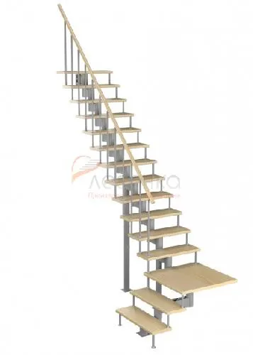 Основой лестницы Prosto Double 50×100 служит усиленный двойной металлический каркас из профильной трубы 50×100 мм (включая 4 опоры на пол под поворотом), который обеспечивает надёжную прочность конструкции и современный актуальный дизайн. Данный вариант лестницы предполагает поворот на 180° через забежные ступени. Под заказ возможно изготовление каркаса под поворотную площадку.