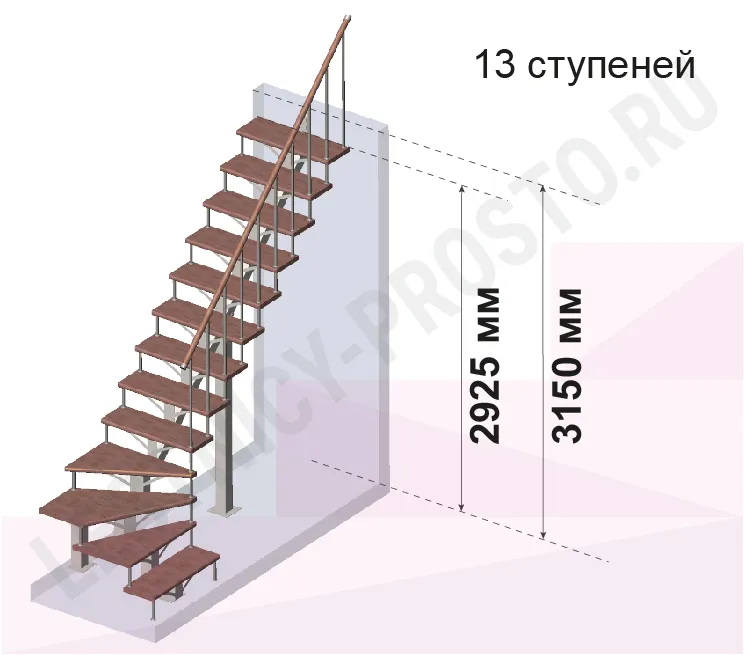 Лестница PROSTO MONO Г-образная h315 см, ступени лиственница