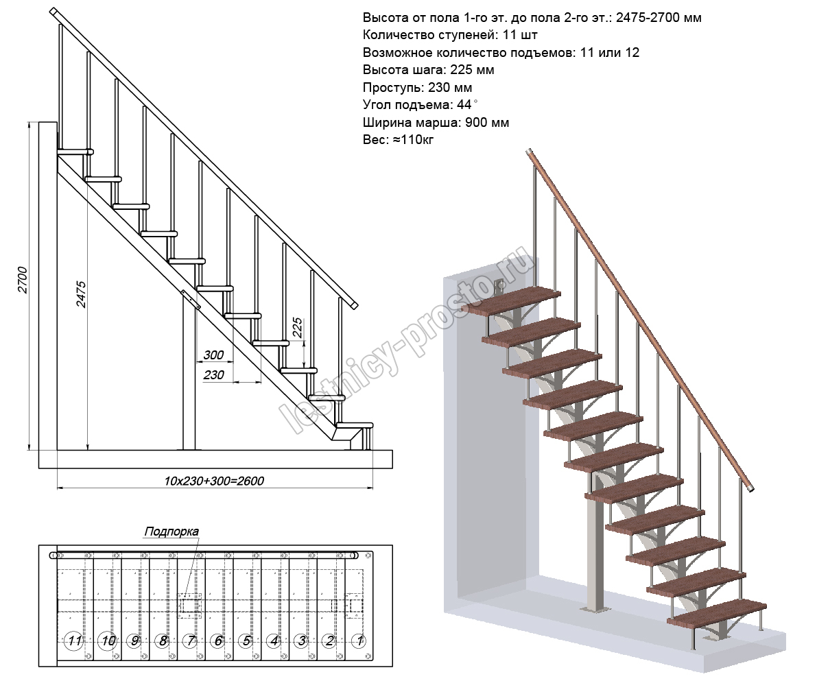 Стоимость указана для металлического каркаса и ступеней. Ограждение можно выбрать отдельно