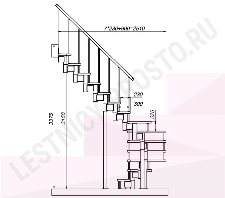Схема и расчет указаны для шага 225 мм - мы рекомендуем эту высоту шага, как оптимальную для комфортного подъёма и экономии бюджета.
