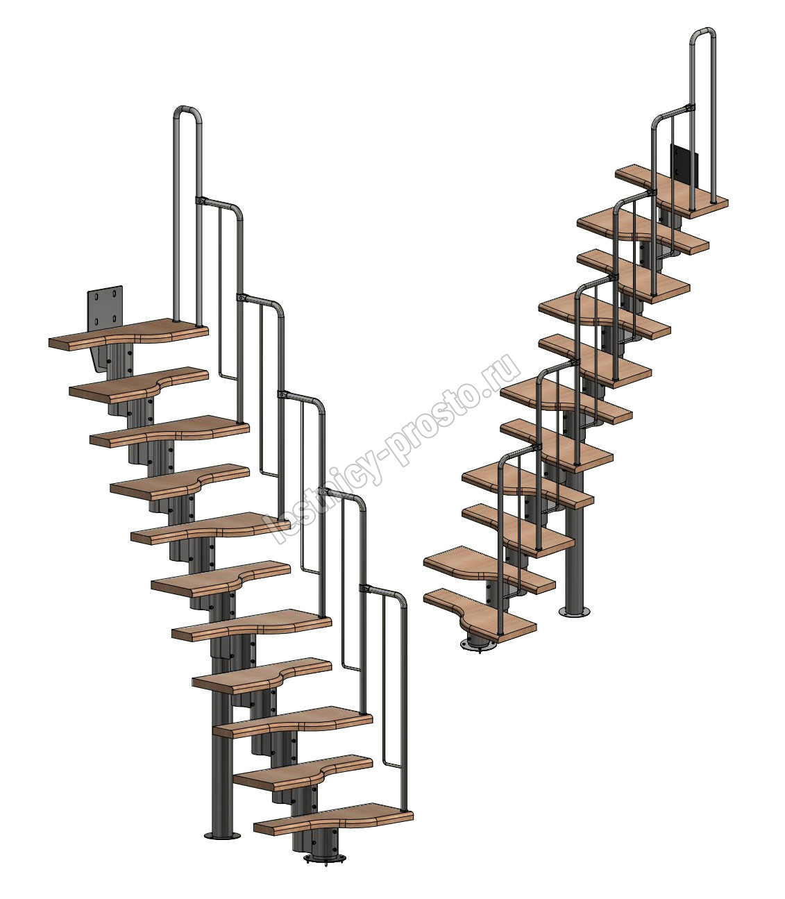 Лестница Prosto Urban Black гусиный шаг 700 мм, h198-288 см (11 ступеней), ясень