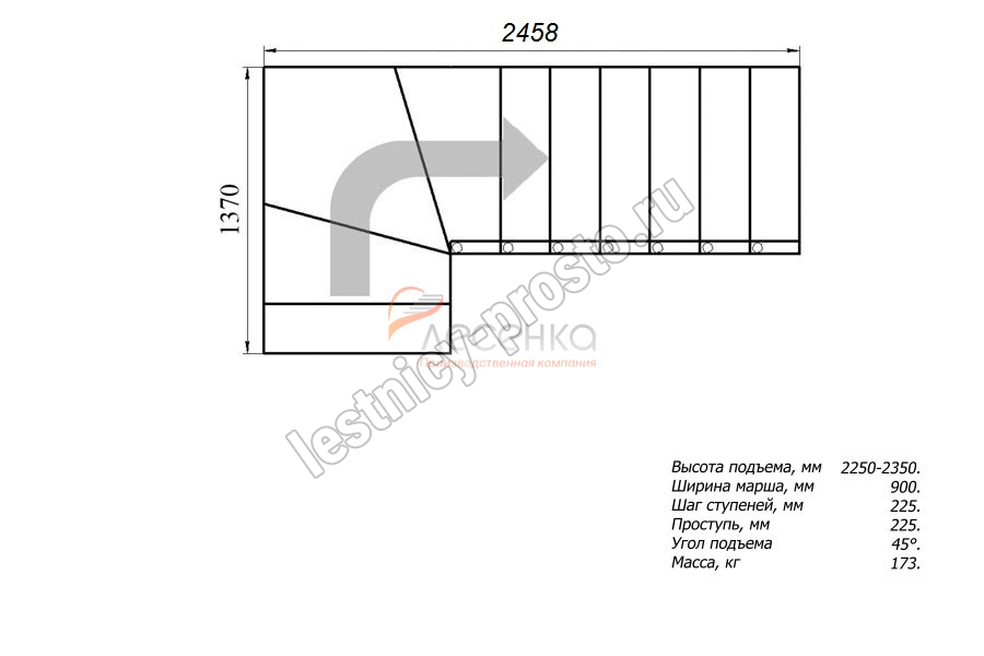 Модульная лестница Фаворит 225 2250-2350, Серый, Лиственница, Крашеная