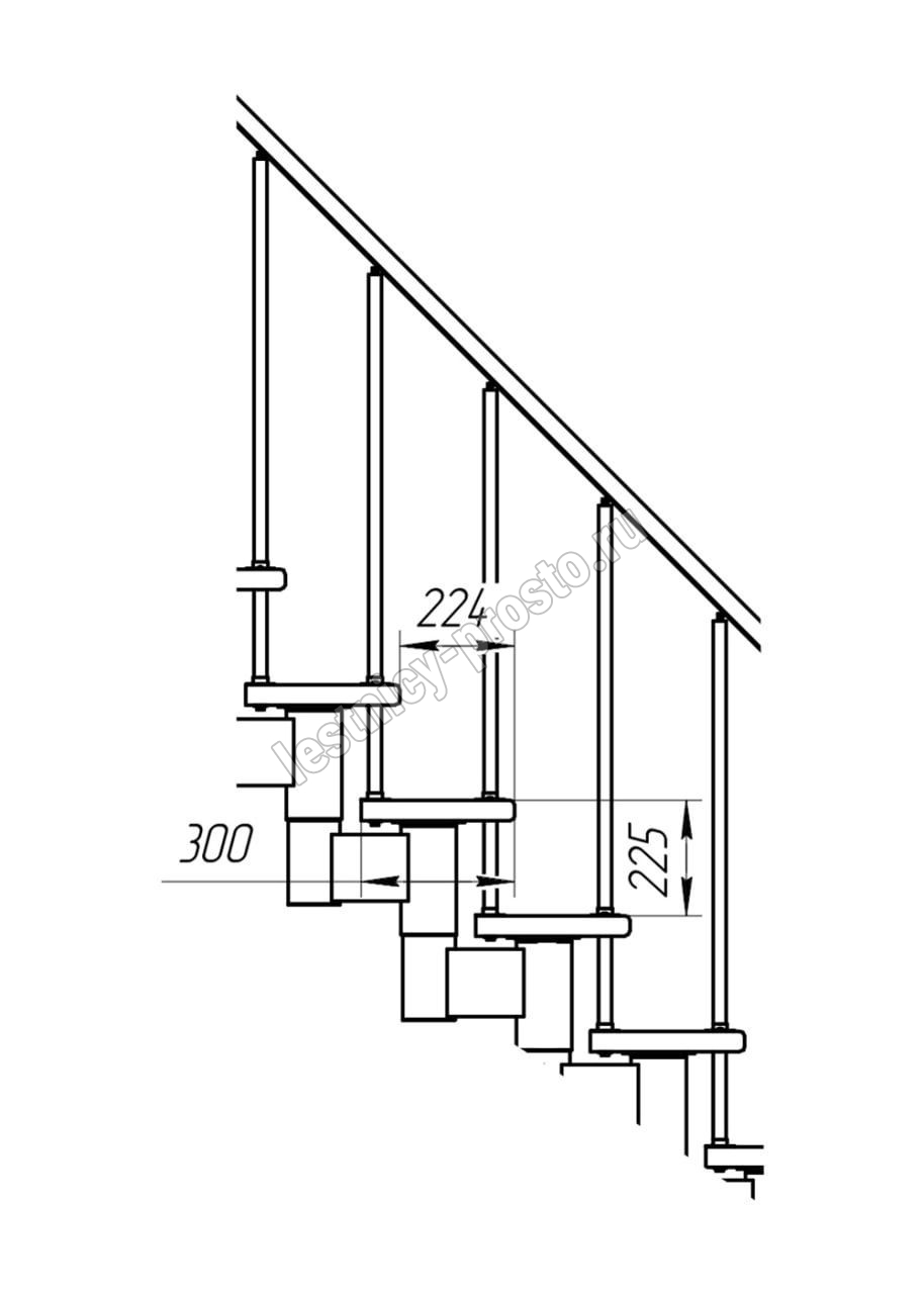Модульная лестница Статус 225 3150-3290, Серый, Лиственница, Крашеная