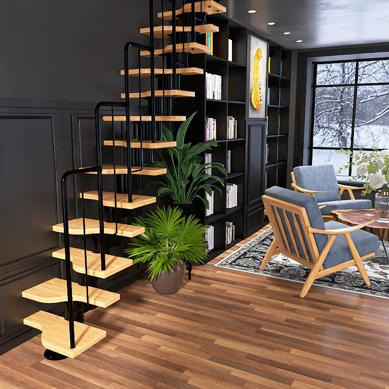 Новинка 2021 года !!! Не имеет аналогов в России по своему надежному конструктиву среди винтовых лестниц. Используемый материал - древесина шлифованная , не окрашенная и металл покрытый порошковой краской. Поручень - пластиковый, уже изогнутый. Цвет поручня в ассортименте.