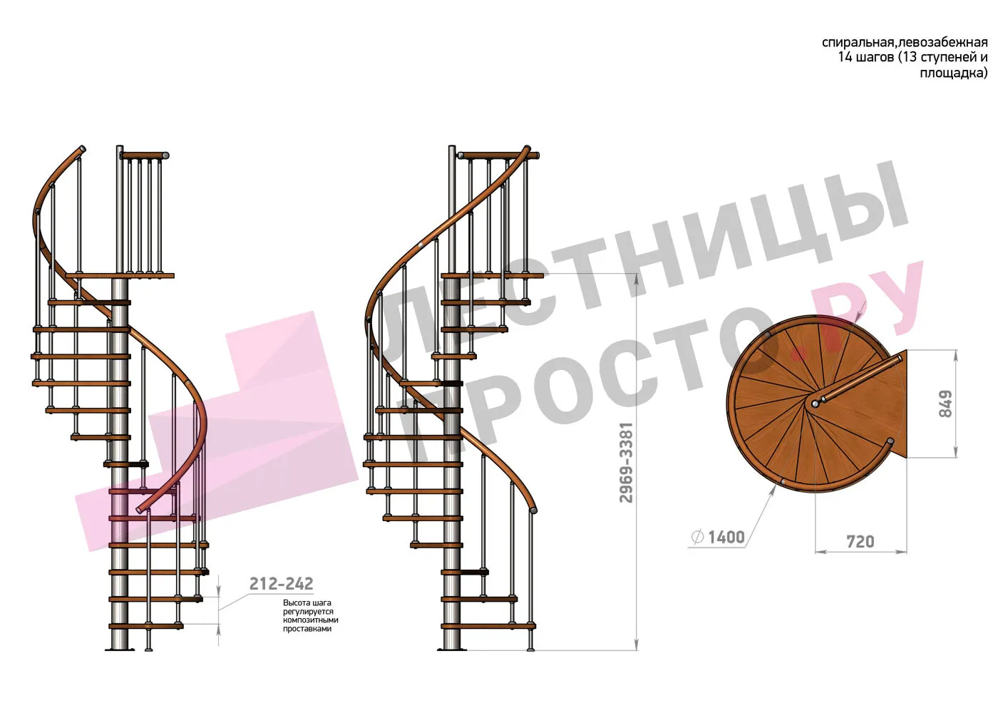 Винтовая лестница Prosto Spiral Black D140см, h296.9-338.1 см |