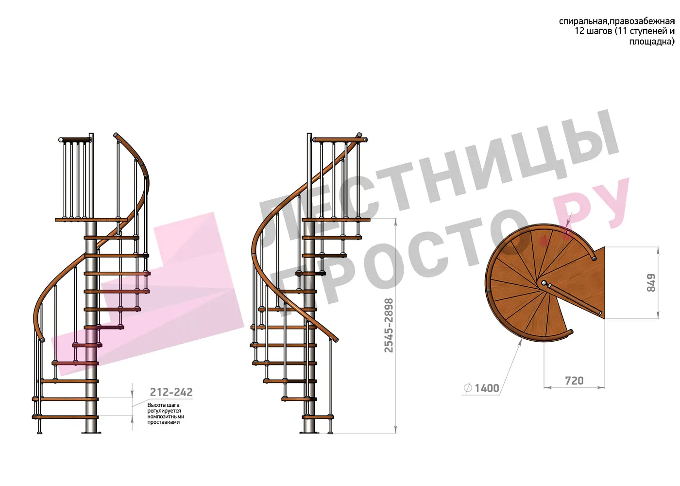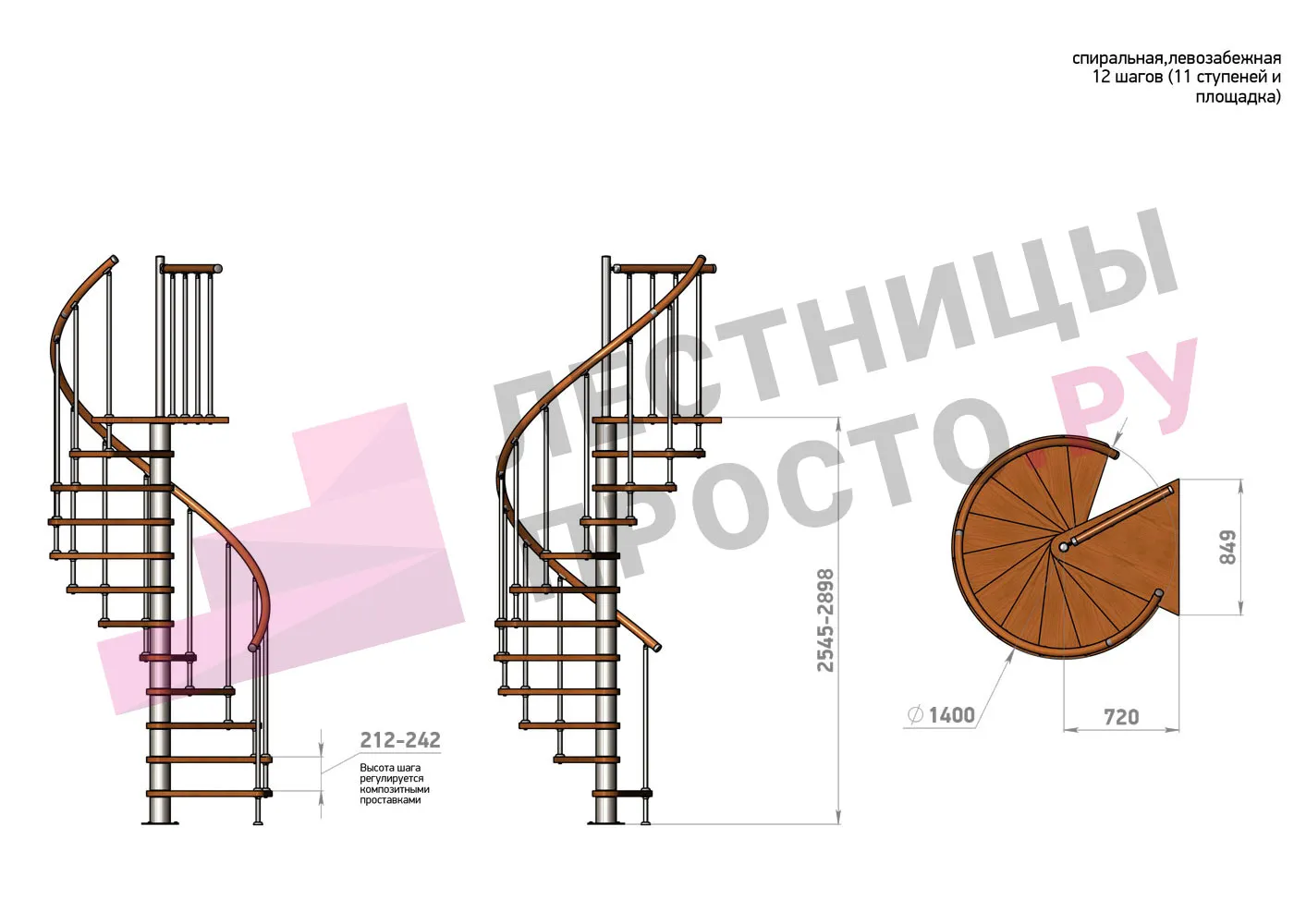 Винтовая лестница Prosto Spiral Black D140см, h275.7-313.9 см |