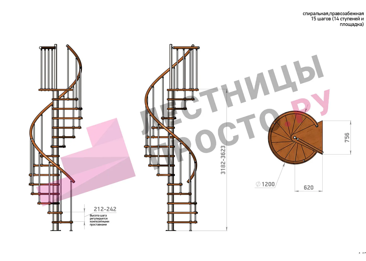 Винтовая лестница Prosto Spiral Black D120см, h318.2-362.3 см |