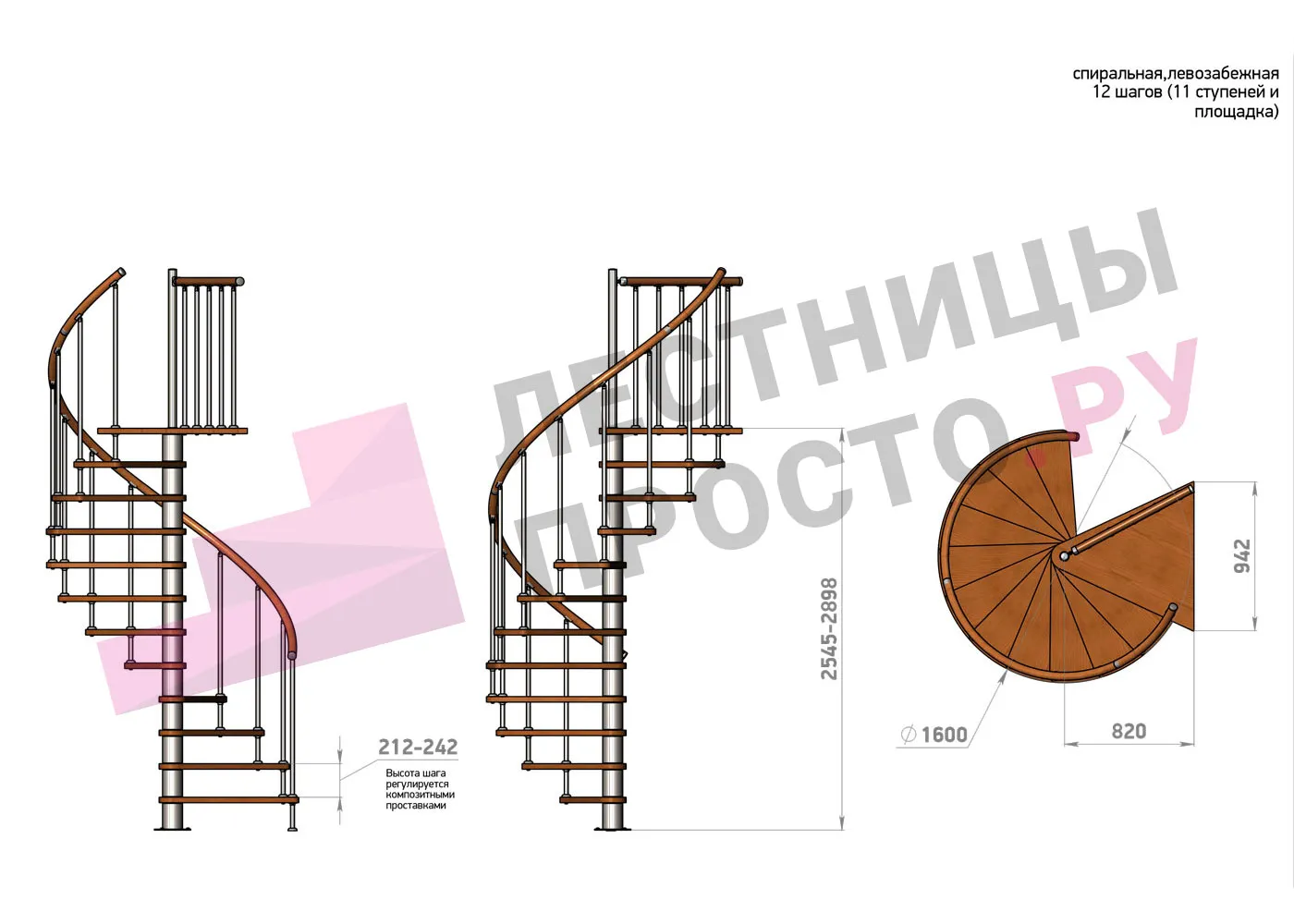 Винтовая лестница Prosto Spiral Black D160см, h275.7-313.9 см |