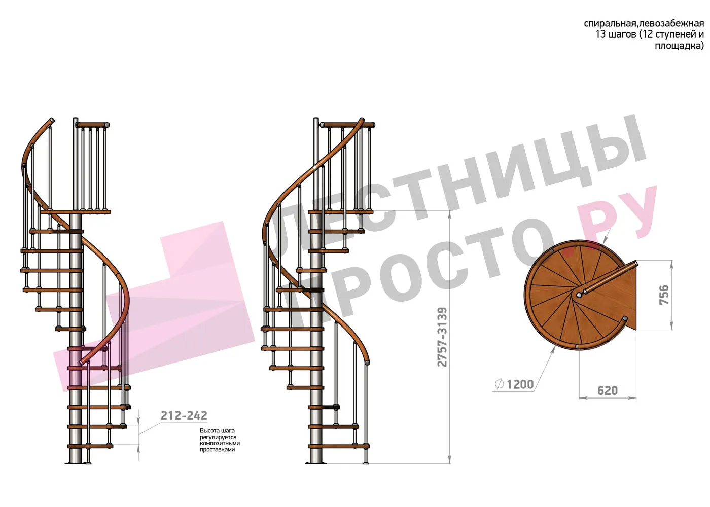 Винтовая лестница Prosto Spiral Black D120см, h275.7-313.9 см |